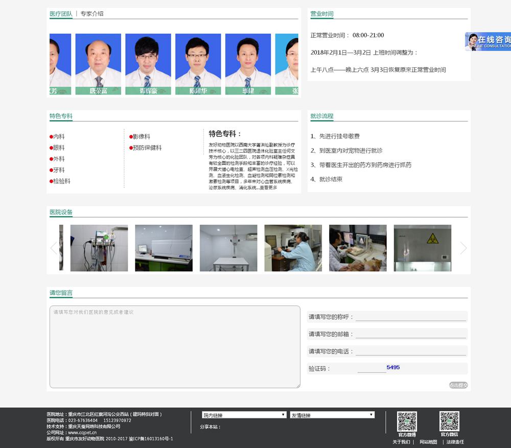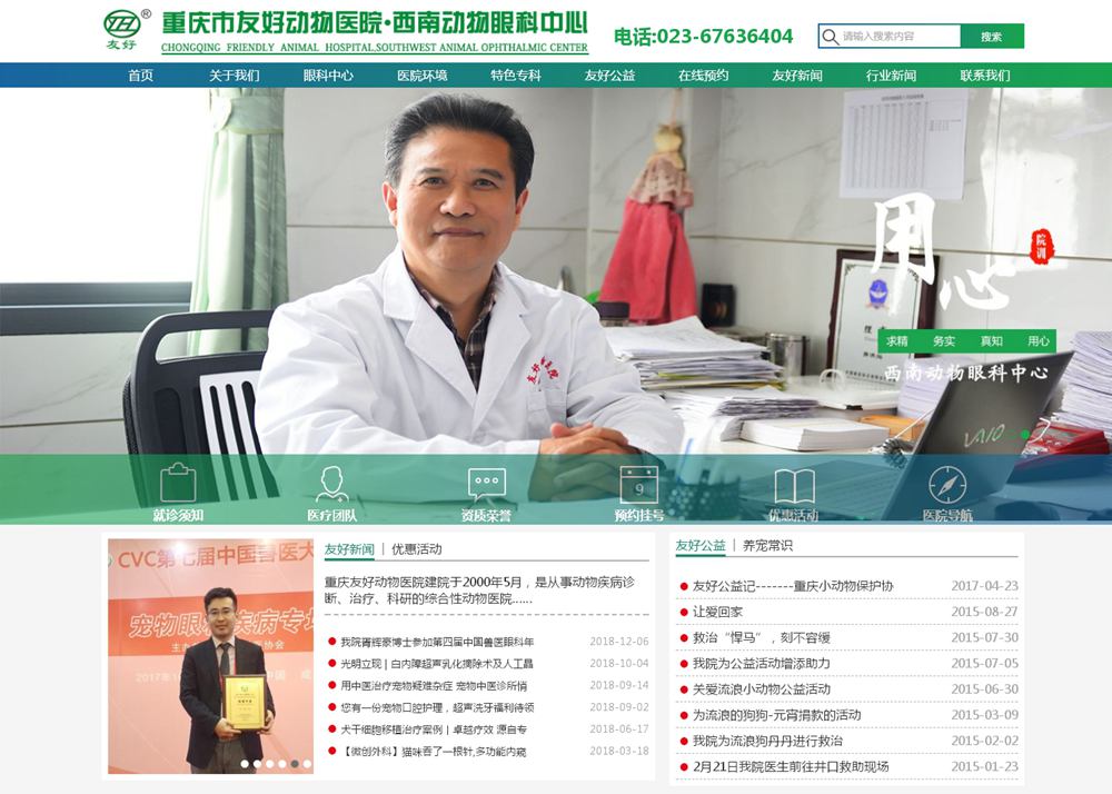 重慶市友好動物醫(yī)院建院于2000年5月,是從事動物疾病診斷、治療、科研的綜合性的動物醫(yī)院。醫(yī)院位于江北區(qū)紅石路6號(紅旗河溝西站、建瑪特對面),營業(yè)面積800平方米,配置有全自動生化分析儀、彩超、美國進口CR、德國海涅眼科設備、進口呼吸麻醉機、ICU監(jiān)護等先進的診斷、治療儀器設備。醫(yī)院由著名的西南大學犬貓疾病學專家胥洪燦和從事臨床工作多年的主治醫(yī)師、具有數(shù)十年工作經(jīng)驗的實驗室診斷、影像學診斷的老專家組成醫(yī)療團隊。在醫(yī)療團隊中,具有高級職稱的占40%,取得碩士學位的占30%,執(zhí)業(yè)獸醫(yī)通過率100%。醫(yī)生定期到北京、上海、廣州甚至國外一流動物醫(yī)院、大學進行觀摩、交流、學習,對提高醫(yī)院的整體技術(shù)水平取得了較大的成效。醫(yī)院遵照對待醫(yī)療技術(shù)科學嚴謹, 對待病患細致縝密 ,對待客戶熱情周到的工作原則。