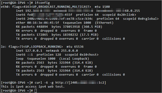 2.執(zhí)行以下命令,測試IPv6客戶端是否能正常訪問后端IPv4 Web服務(wù)。
