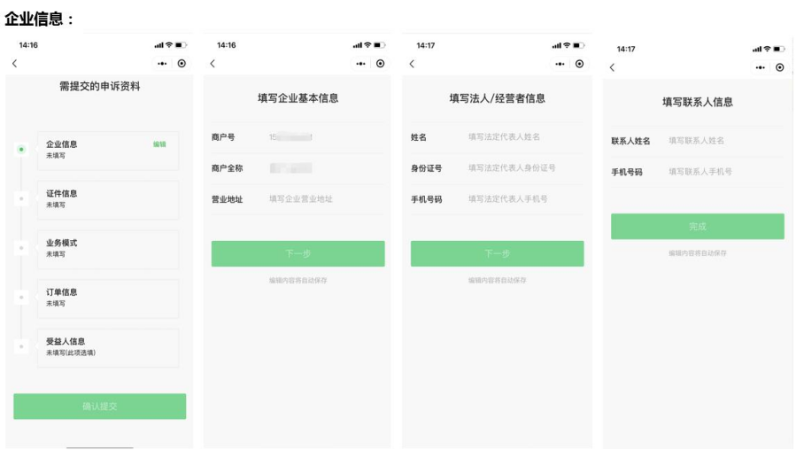 2. 申訴準(zhǔn)備資料申訴前,需先準(zhǔn)備好企業(yè)信息、證件信息、業(yè)務(wù)模式、訂單信息。(溫馨提示:若申訴內(nèi)容/圖片不符,可能會(huì)影響申訴)。需提供內(nèi)容如下(也可根據(jù)附件清單提前準(zhǔn)備申訴資料),微信交易申訴信息表20220408.xlsx,如在申訴過(guò)程中有疑問(wèn)的可截圖在指定的專項(xiàng)業(yè)務(wù)對(duì)接群咨詢: