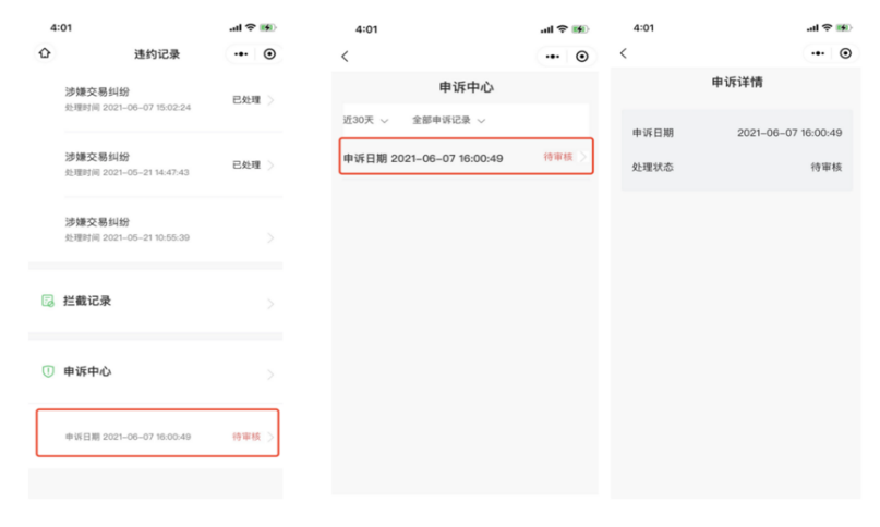 三、違約提交申訴和查詢申訴進(jìn)度