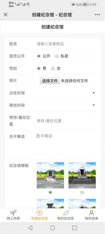 天蠶紀念館網(wǎng)主要用于網(wǎng)上祭祀已故親人,寄托思念的管理系統(tǒng)。主要功能有,親人創(chuàng)建故人空間,形成以逝者為主題的個人紀念館空間,在紀念館中可以對逝者進行掃墓、祭拜、行禮、獻花等,同時可以在線購買公墓的服務(wù),如代祭祀等。
