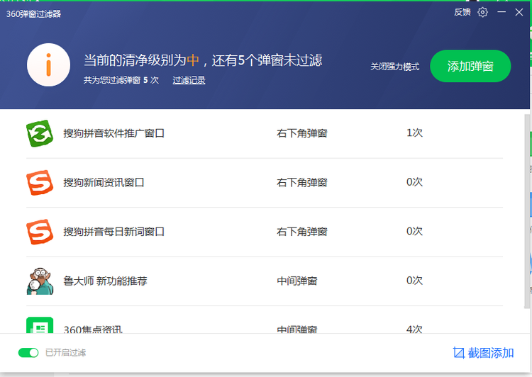 2.點擊右上角【添加彈窗】把顯示的其他廣告彈窗開啟過濾。