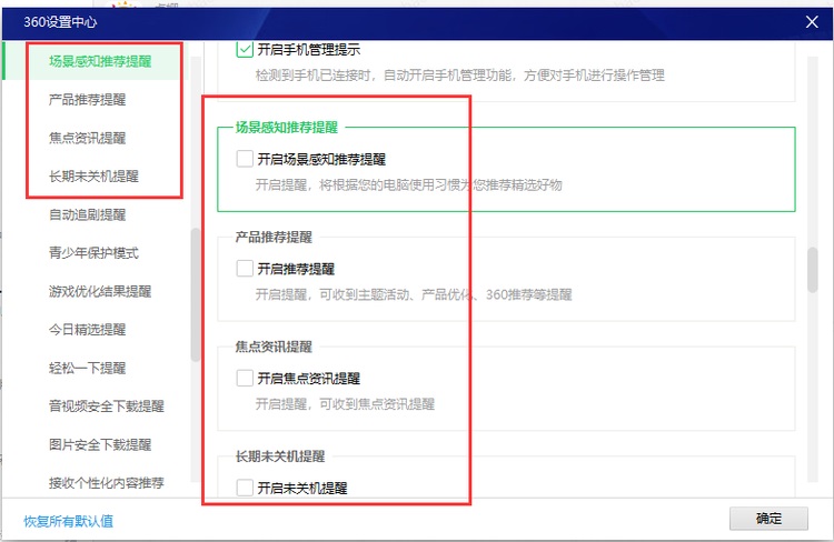 在360安全衛(wèi)士設(shè)置中心--彈窗設(shè)置中取消勾選以下項目右側(cè)對應的選項即可(此處截圖為最新版本安全衛(wèi)士設(shè)置內(nèi)容,如果您那顯示不一致,請升級到最新的beta版本后在進行設(shè)置):
