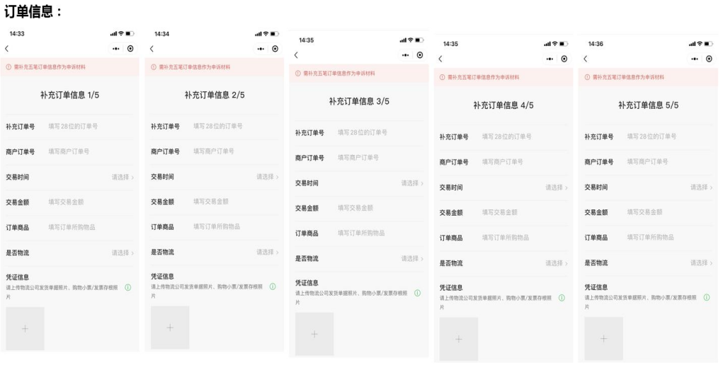2. 申訴準(zhǔn)備資料申訴前,需先準(zhǔn)備好企業(yè)信息、證件信息、業(yè)務(wù)模式、訂單信息。(溫馨提示:若申訴內(nèi)容/圖片不符,可能會(huì)影響申訴)。需提供內(nèi)容如下(也可根據(jù)附件清單提前準(zhǔn)備申訴資料),微信交易申訴信息表20220408.xlsx,如在申訴過程中有疑問的可截圖在指定的專項(xiàng)業(yè)務(wù)對(duì)接群咨詢: